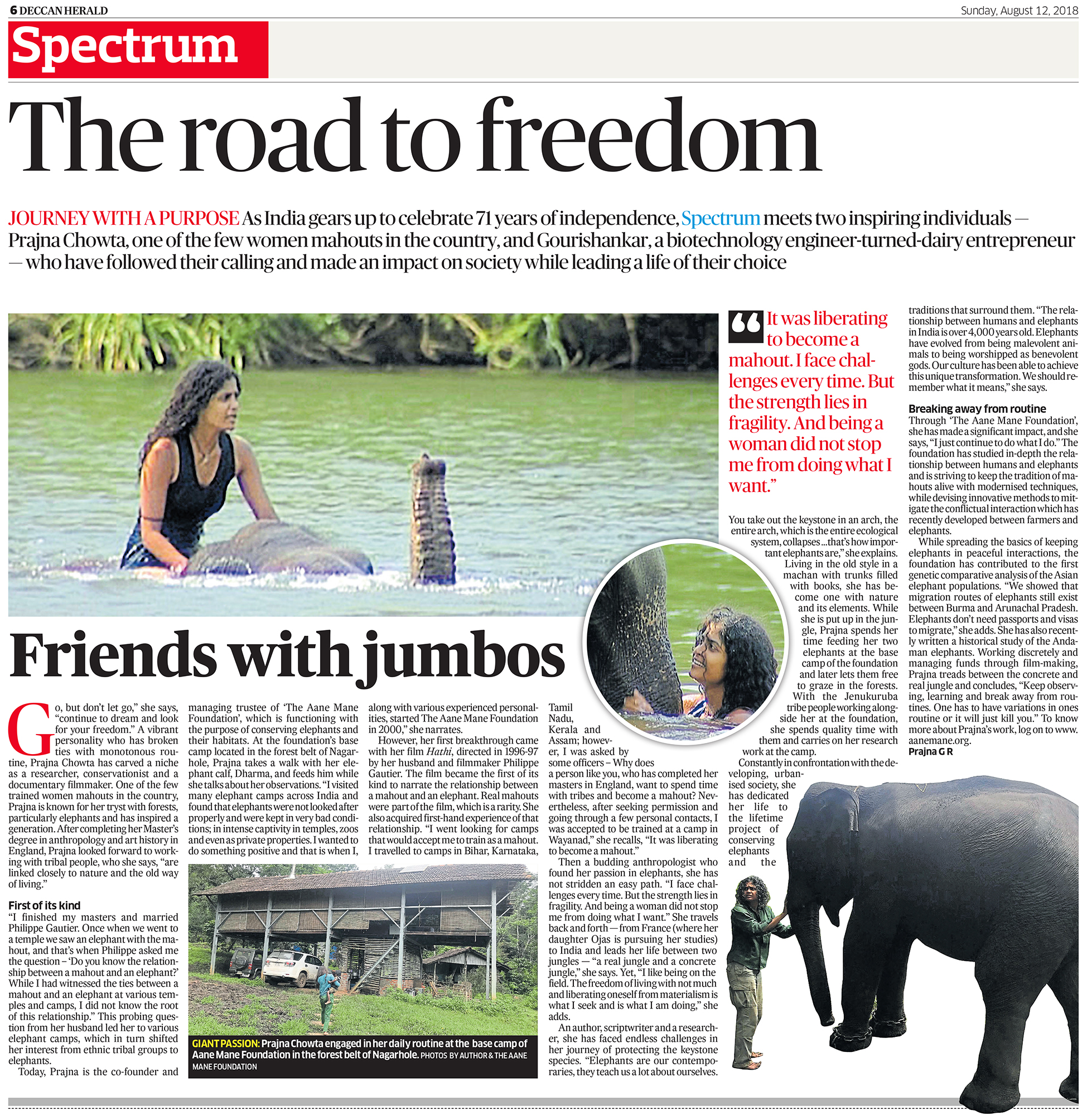 August 2018 | Friend with Jumbos (by Prajna GR, Deccan Herald)