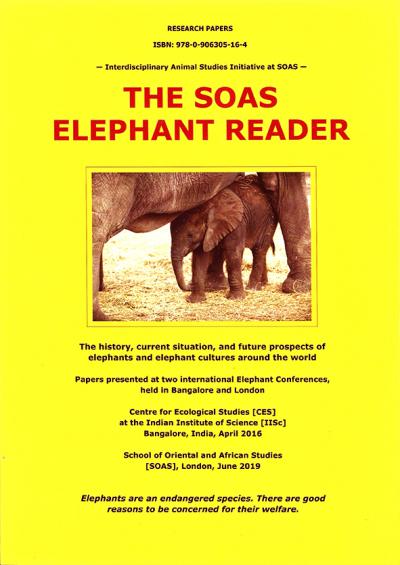 The SOAS ELEPHANT READER, edited by Ed Emery, was published by RN Books of London in May 2021. The volume includes the proceedings of the SOAS Elephant Conferences held at the Centre for Environmental Studies (CES) Bangalore, 4-6 April 2016, and at the School of Oriental and African Studies (SOAS) London, 22 June 2019.